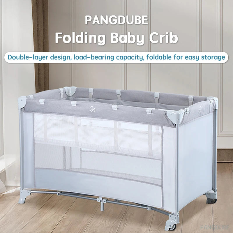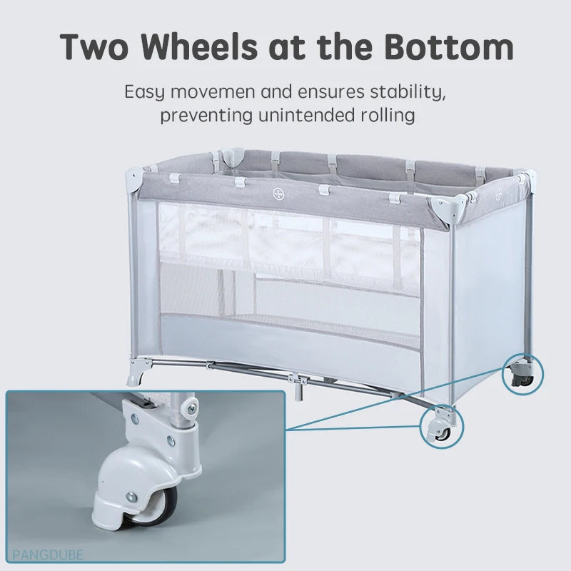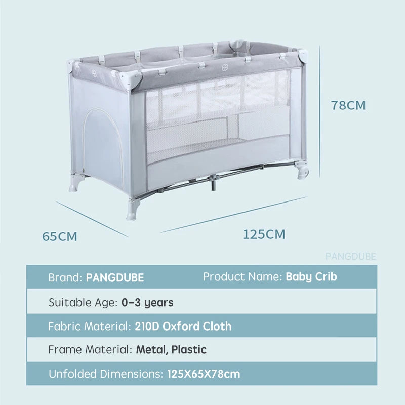 PANGDUBE 125*65cm Baby Crib 0 To 3 Years Old Kids Bed with Wheels Portable Crib for Baby Playpen Multifunctional Safety Fence
