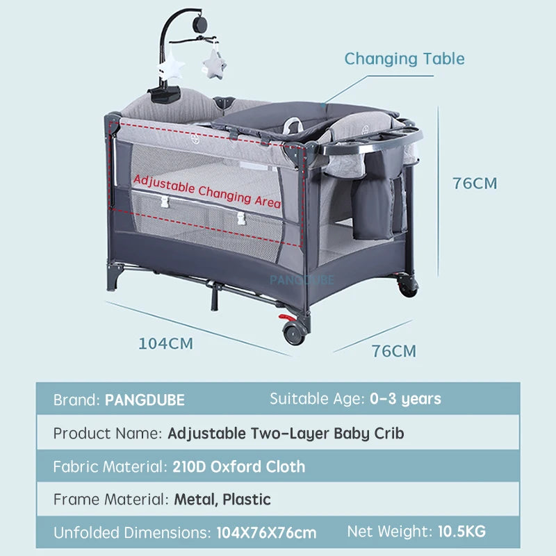 PANGDUBE Multifunctional Baby Crib 0 to 3 Years Old Newborn Baby Bed 104*76cm Cribs with Changing Table,Playpen,Co-sleeping Bed